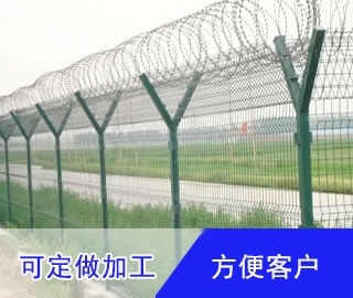 机场围栏网是安全防盗连接件和热镀锌刀片刺笼组成是强度和安全防御性级别很高的隔离栅产品。近年来,机场围栏网被广泛应用在机场,军事基地等高安全场所。(如果在机场围栏网顶部加装刀片刺丝、刀片刺绳后又很好的增强了安全防护性能。)